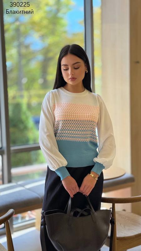Светр жіночий Код: 390225 ◾ Матеріал: Трикотаж ◾ Склад: Коттон,акріл Ширина плечей: 31 см Напівобхват грудей: 46 см Напівобхват талії: 44 см Напівобхват стегон: 40 см Довжина рукава: 57 см Довжина виробу: 52 см