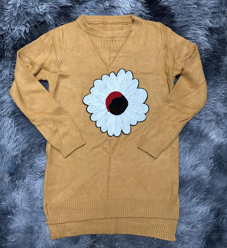 🌼 Стильний подовжений светр з об'ємною квіткою Продам затишний та оригінальний светр у красивому гірчичному кольорі. Ця модель ідеально поєднує комфорт та цікавий дизайн, що виділить вас із натовпу. Основні переваги: • Дизайн: Центральний акцент — велика квітка-ромашка. Серцевина квітки оздоблена фактурними намистинами, що додає образу об'єму та унікальності. • Фасон: Подовжений крій (туніка), що чудово виглядає як з вузькими джинсами чи лосинами, так і самостійно під високі чоботи. • Деталі: Класична кругла горловина, манжети на рукавах та широка резинка по низу виробу. Є невеликі розрізи з боків для зручності. • Матеріал: М'яка на дотик в'язка, приємна до тіла, не «кусається», не захочеться знімати. Стан та характеристики: • Колір: Тепла гірчиця (як на фото). • Стан: [Новий ]. • Розмір: S-M або One Size Турція, шикарна якість Бірок на ній не має, фото на собі не роблю. Для замовлення пишіть в приватні повідомлення.