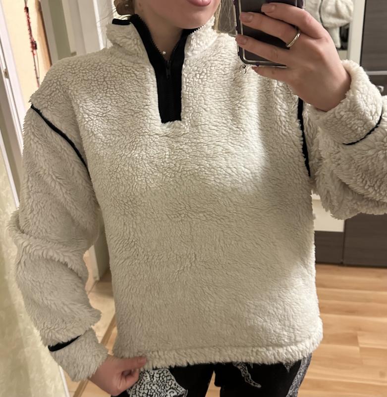 Дуже тепла флісова кофта з чорними вставками та замком на шиі, всередині-фліс,зверху-хутро,розмір XS-S,може бути на М