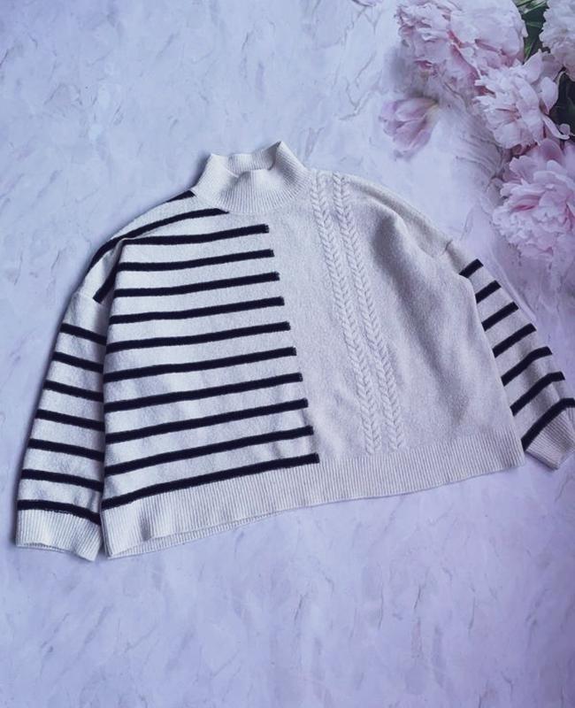 Продам свій класний теплий светрик у смужку в гарному стані Дивіться на фото вказала є плямка маленька і маленька мікро дірочка Виробник вказує розмір ZL я носила на M як Over says Плечовий шов спущений тому рукава за заміром будуть короткуваті Розмір 48 Довжина 52 Шин73 Плечі 63 Рукав 37 Дивіться інші мої оголошення адже при замовлені двох товарів 3-я річ найдешевша у подарунок 🎁 💛🩵💛🩵💛🩵💛🩵💛🩵💛🩵💛🩵💛🩵💛🩵