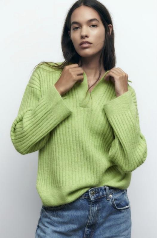🌿зелений светр Zara з комірцем крою оверсайз Розмір:S Заміри:ПОГ 57 см, довжина 62 см, рукав від горловини 72 см