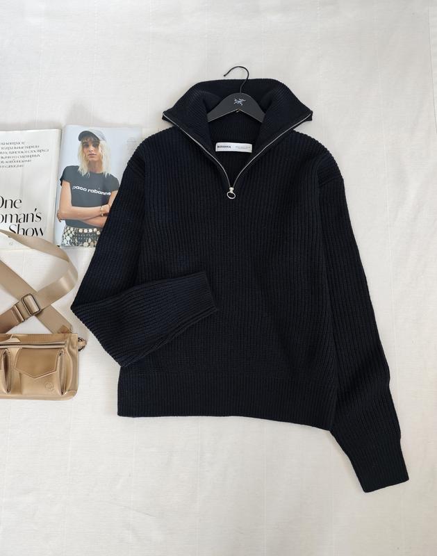 🌿черный свитер с замком Bershka кроя оверсайз, содержит шерсть 13% Размер:М Замеры:ПОГ 63 см, длина 63 см, рукав от горловины 86 см