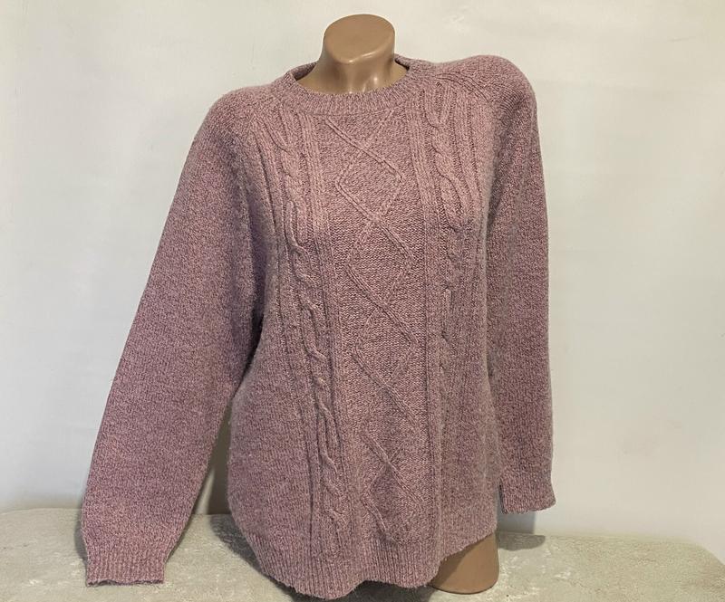 Жіночий светр розмір вказаний 16/18 ▫️Півобвід грудей 57-65 см ▫️Півобвід стегон 55-66 см, внизу та на рукавах манжети ▫️Довжина виробу 68-69 см, спереду та ззаду ▫️Довжина рукава реглан 72 см від горловини стан добрий, можуть бути панчіх ковтунців від носіння