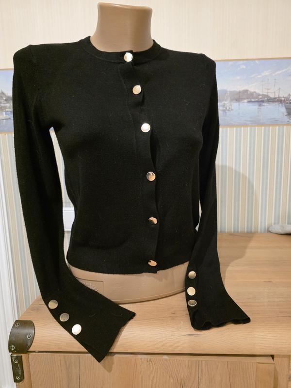 Приємна кофтинка,віскоза,з золотими ґудзиками. Плечі 36 пог 42 довжина 46 рукав 62