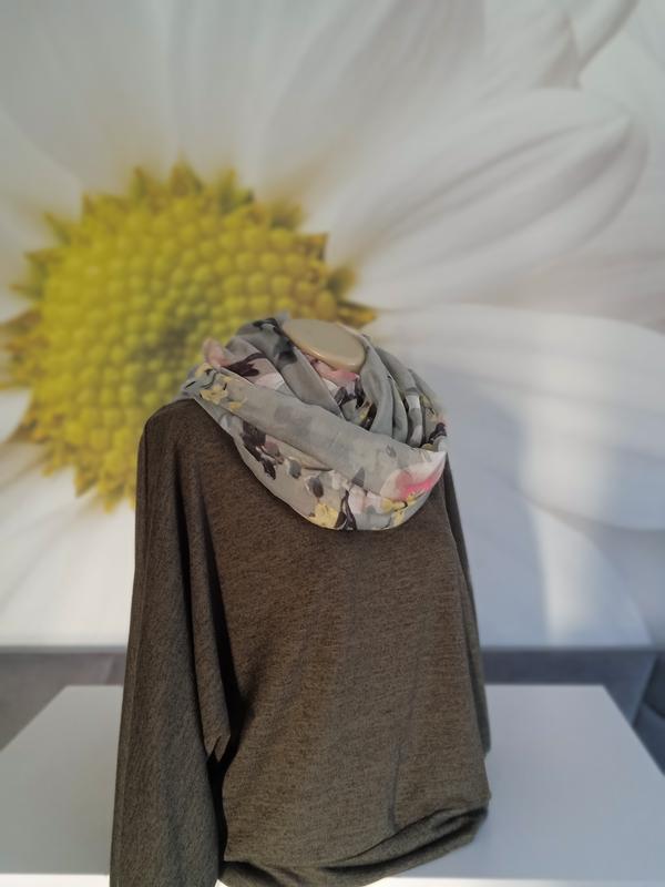 Класична однотонна кофтинка з довгим рукавом насиченого кольору хакі. Легка та зручна. Приємна на дотик. Гладка машинна в'язка. Нитка середньої товщини. Стрейч. Лягає вільно, з напуском на манжет по низу. Акуратний виріз. Стильно виглядає з шарфом в тон у комплекті (шарф може бути замінений, але в кольорі). Є розміри. 52р на пог-56-58 50р на пог-54-56