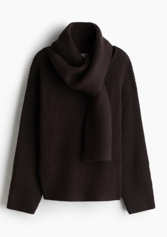 Свитер H&M с шарфом красивого шоколадного оттенка, идеальное состояние, подойдет на xs-s-m