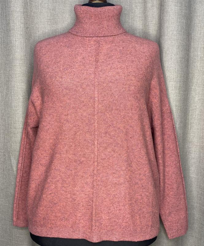 Жіноча кофтинка в рожево-сірому кольорі. Подовжена, з коміром стійкою.