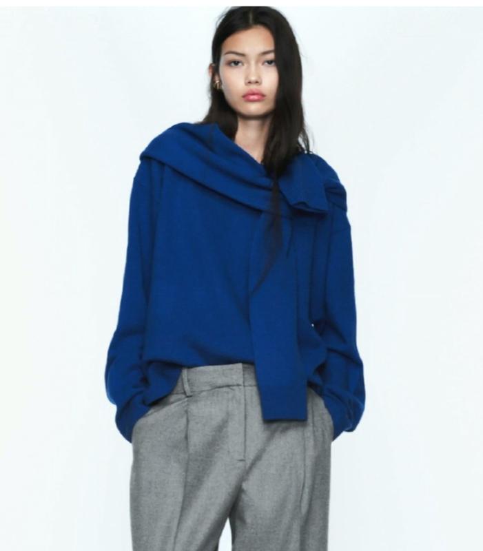 Шерстяной свитер Zara с рукавами имитация шарфа, супер тёплый р.с длина 62см Ширина 58 Плечи 45 Рукав 57
