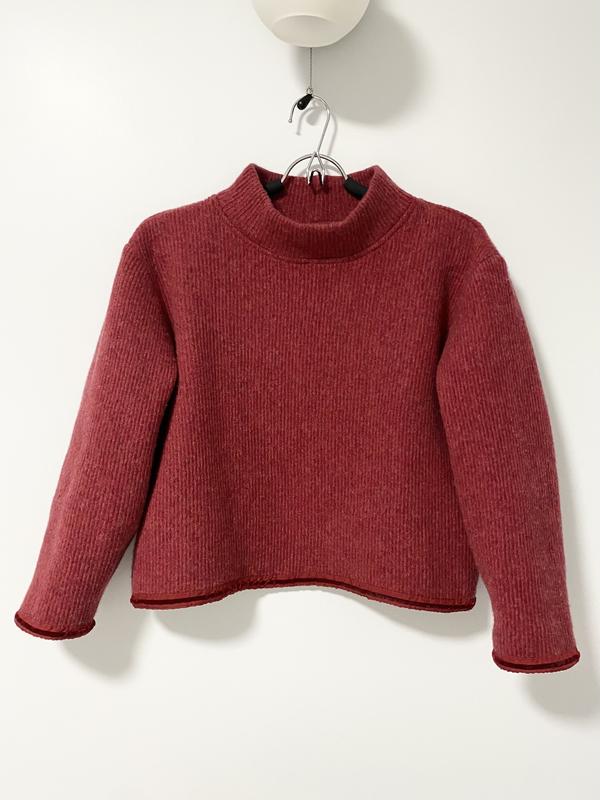Укороченный свободный свитер с воротником стойкой. Состав: 80% шерсть, 20 Полиамид. Плотный, структурный, предаёт объем в плечах.. Теплый, но не паркий, не кусается. Очень качественная вещь. Производство: Швейцария. Цвет: между красным и бордовым. Приятный, «умный» цвет.. Размер указан S, но, думаю, для S будет сильно объемный. Демонстрация на размере М (88-70-100, рост 170). На мой рост рукав 3/4. Возможны разные варианты посадки. На девочек небольшого роста размера М-L или с широкими плечами посадка будет классической.. Не стесняйтесь заказывать по Безопасной оплате на примерку. Оранжевая трикотажная юбка на последнем фото также в продаже, см. другие мои объявления. .