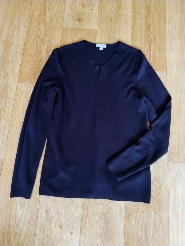 Тонка вовна, темно синій колір, ідеальний стан, дуже м'який і приємний до тілу.Пог 45 см тягнеться до 57 см . Заміри на фото.