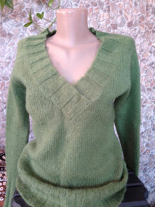 мохерова кофта з V-образним вирізом,оливкового кольору,рукав від горловини 76 см,груди 48 см,довжина 64 см,тягнеться
