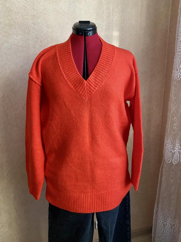 Светр Mango . Стильна, брендова річ. Пог 59 Довжина по спинці 75 Довжина рукава (рукав спущений) 51 Плече 15 Колір камера не передала він червоно- помаранчовий із меленькими вкрапленнями білої нитки ( на фото видно) Дуже мʼякий Дивіться інші мої оголошення.