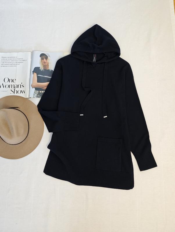 🌿чорний светр з капюшоном бренду Marc Cain, крій вільний, тканина 90% вовна, 10% кашемір Розмір:2 Заміри:ПОГ 50 см, довжина 73 см, рукав від горловини 68 см