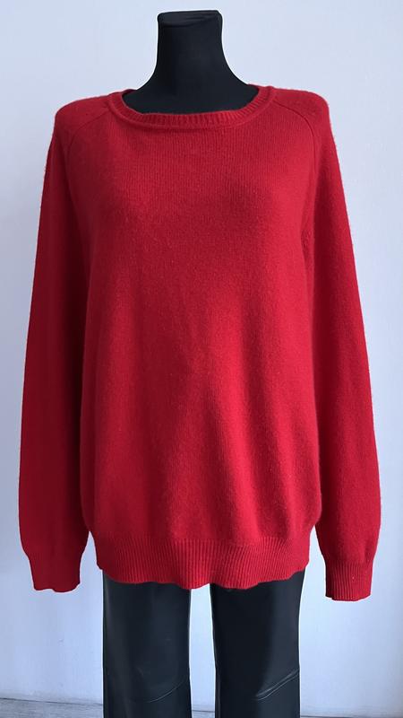 Червоний кашеміровий светр Бірка з розміром зрізана 100% кашемір Стан ідеальний Розмір орієнтовно ХЛ/ХХЛ Півобхват грудей - 58 см Довжина рукава від горловини - 80 см Довжина -70 см