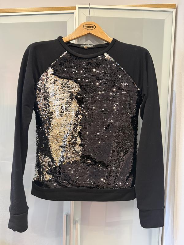 Стильна кофта з пайетками. Чорний колір. Підійде на розмір 36 (S). В ідеальному стані. Всі пайетки на місці, після стирки не відриваються.