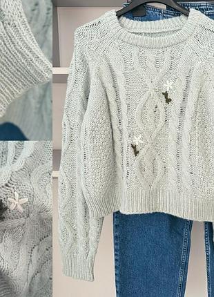 Дуже гарний вʼязаний светр 🥰🥰🥰 Якість відмінна тягнеться 👌👌 Дуже гарний ніжно-бірюзовий колір 🩵 Розмір універсальний Пог 58, рукав 74, довжина 45см Ціна зі знижкою 450грн🔥🔥🔥