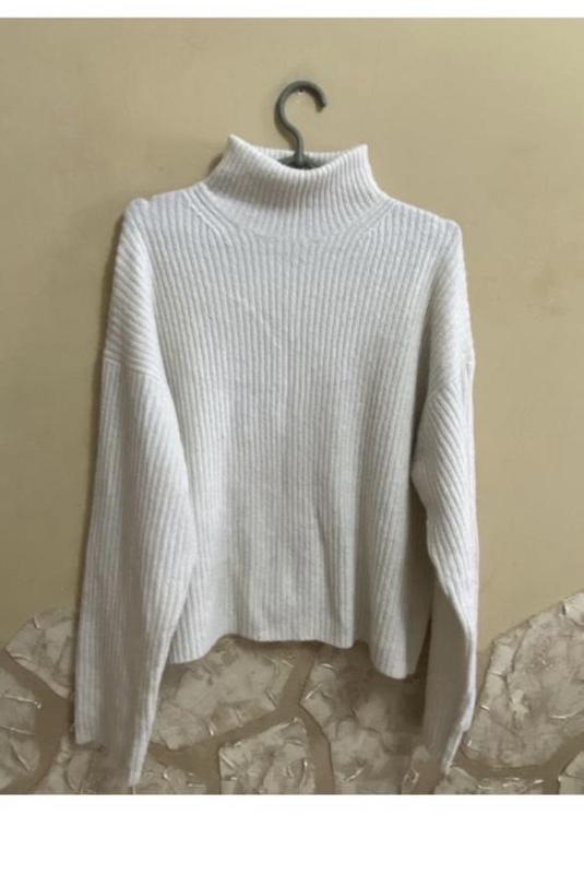 свитер женский белый свитер женский теплый с шерстью , цвет млочно- белый, ворот можно подворачивать внутрь и наружу, свободная посадка , ОГ 110, длина 54 см