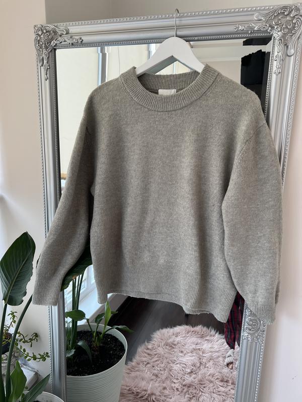 Дуже красивий, мягенький светр. Має у складі шерсть. Стан 8/10, зовсім трішки покошлачений, практично не помітно ПОГ: 58 ПОТ: 56 Довжина: 65 Довжина рукава: 54 52% поліестер, 41%акрил, 4% шерсть