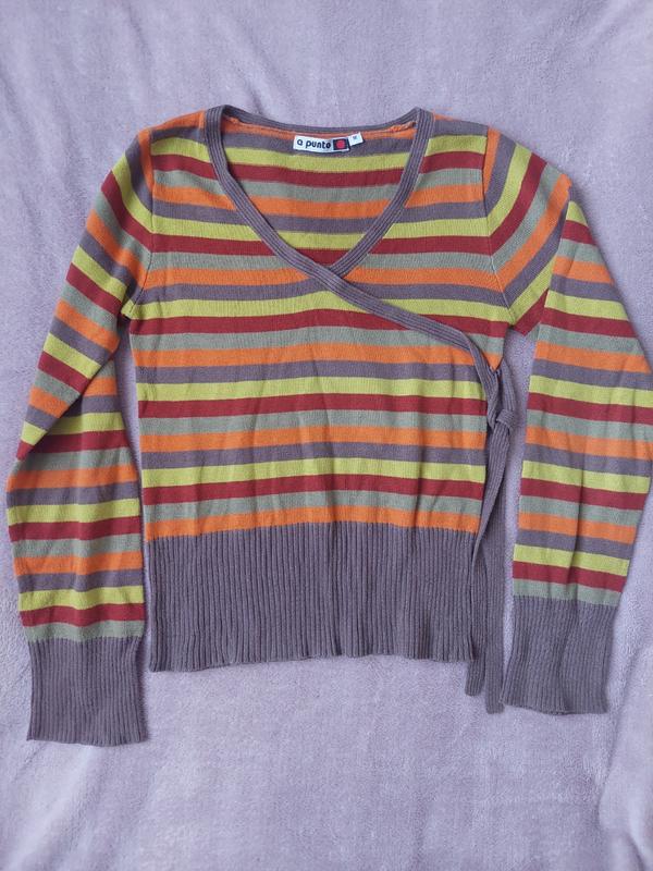 смугастий светр-кардиган із імітацією запаха. ідеальний стан довжина-49см обєм гр.-35см рукав-56см