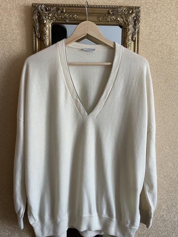Дуже гарний светр жіночий 100% кашемір❤️ , у новому стані, без дефектів, розмір L, по бокам з розрізами пог 70, рукав від шиї 72 ,довжина пере 65, зад69