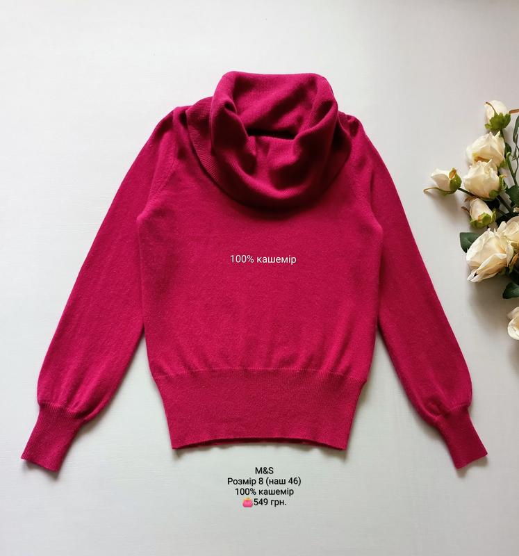 Гольф джемпер кашемір від M&S. Розмір 8 (наш 46). Склад: 100% кашемір. Заміри: довжина по спинці 59 см, ПОГ 46 см, ПОТ 41 см, ПОБ 30 см резинка, плече 5 см, довжина рукава 66 см, висота горловини 30 см. Стан новий.