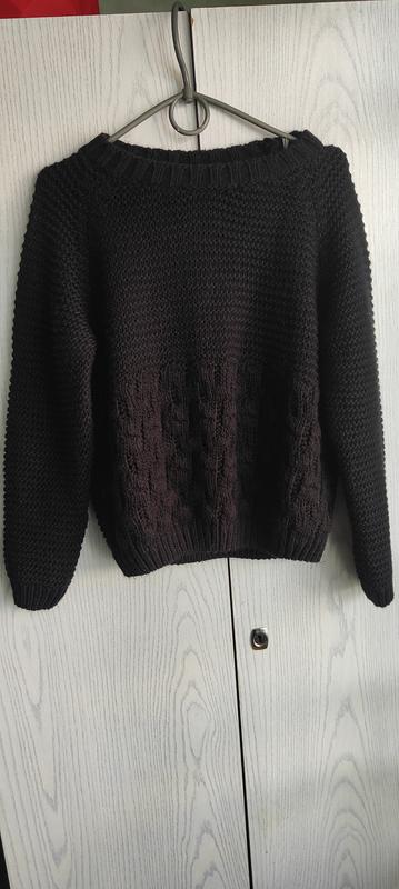 класичний чорний в'язаний светр з фактурним візерунком, який підходить для повсякденного носіння.