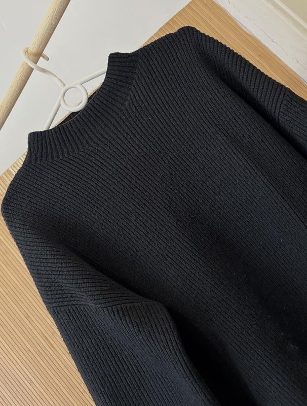 Жіночий чорний светр у рубчик з пишним рукавчиком 🥰