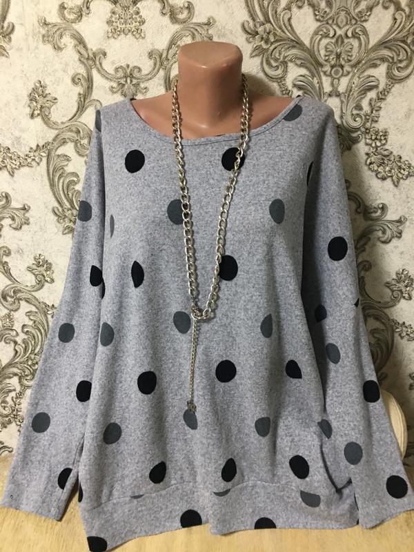 Свитер Батал горошек длина 75 грудь 160 рукав70 рукава приспущены удар лавины