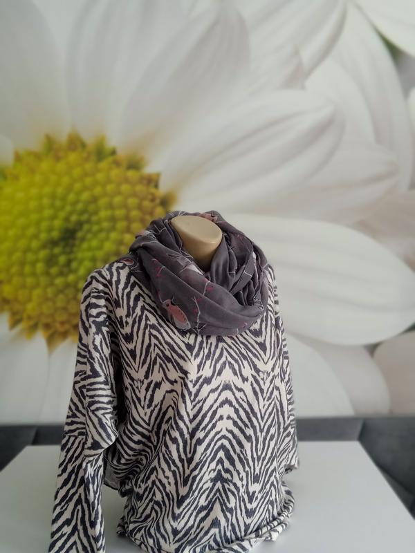 Класична кофточка з довгим рукавом та оригінальним контрастним малюнком. Цікаво поєднані кольори. Тепла та комфортна. Приємна на дотик. Гладка машинна в'язка. Нитка середньої товщини з легким ворсом. Стрейч. Лягає вільно. Фасон-легка летюча миш. Акуратний виріз -лодочкою. Гарно виглядає з шарфом в тон у комплекті (шарф може бути замінений, але в кольорі). Є розміри. 52р на пог-56-58 50р на пог-54-56