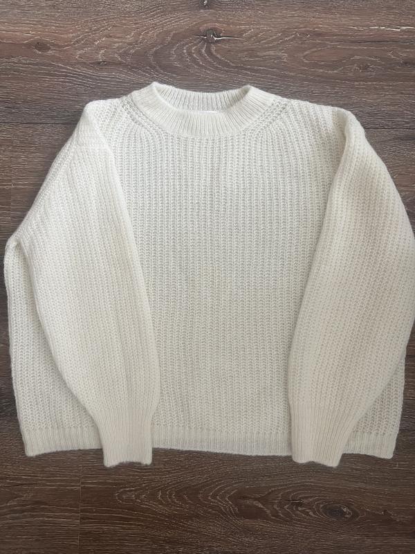 Дуже гарний мохеровий светр, оригінал. Якісний, не колючий, нитка не лізе. Мʼякий та легкий, мов хмаринка. Одягався 2 рази, стан нового, без слідів носки. В магазині такі коштують від 4200 до 5600. Модель оверсайз, підійде від xs до м.