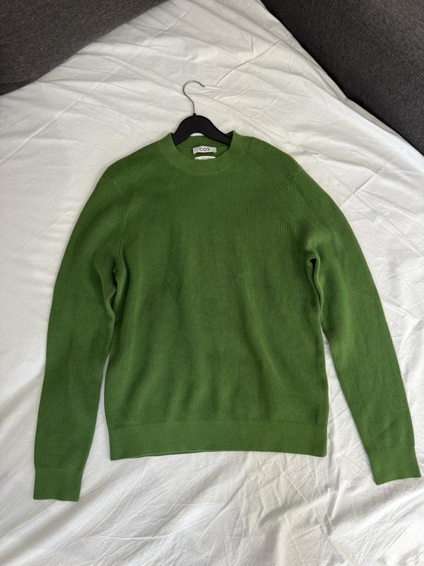 Светр COS, 100% бавовна, розмір M Стильний зелений светр від COS у мінімалістичному дизайні. Новий • 100% натуральна бавовна – приємний до тіла, дихає • Актуальний зелений колір • Розмір M (сідає вільно, гарно тримає форму) • Базова модель, легко комбінується з джинсами, брюками або спідницею