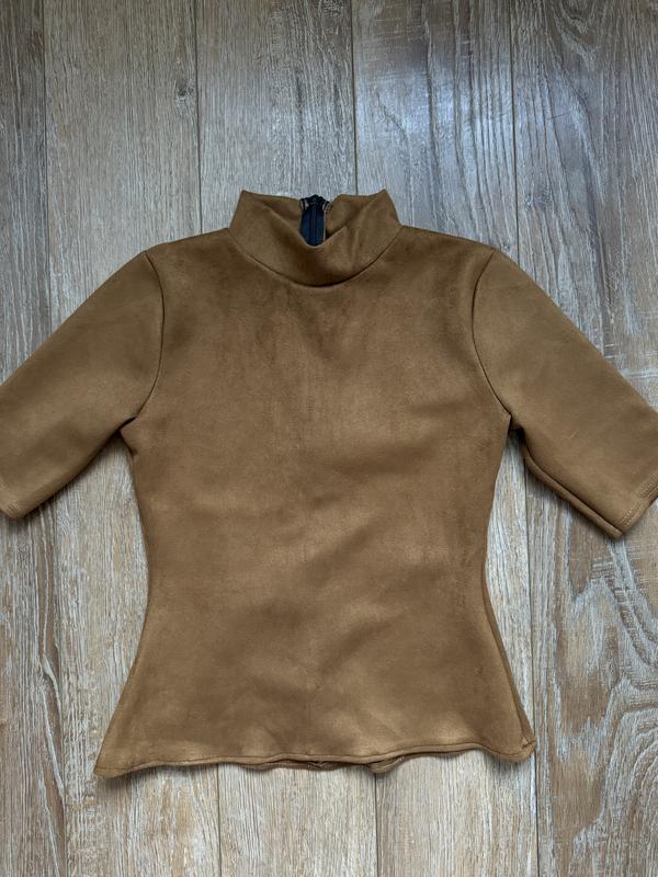 Замшева кофтинка під шию з коротким рукавом, ззаду на замочку, гарний колір