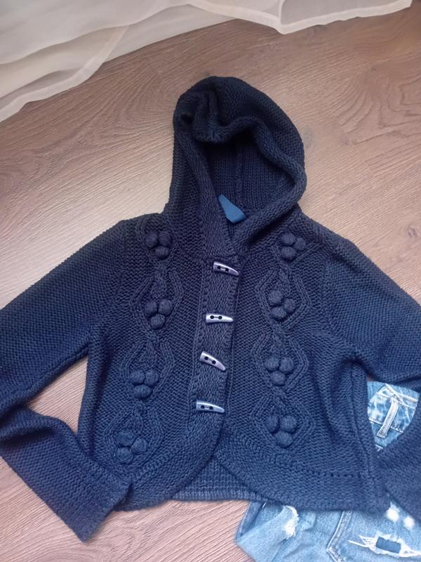сліди носіння мінімальні, у вигляді катунців колір темно синій, гарний, також красива крупна вязка не колить,мягкий за рахунок фасону йде від більшої S до невеликої L,добре тягнеться