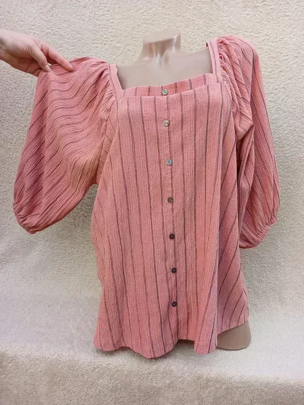 Интересная кофтюля с модными пышными рукавами, пуговицы обманки, ткань жатка, становление идеала ПО груди 60-70, ПО низу 64-82, длина 67 Замеры отличий половина