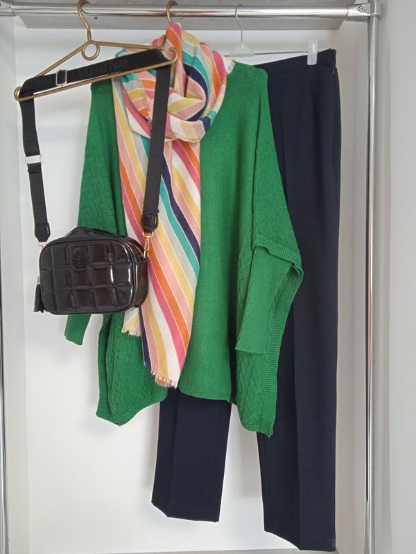 Стильна однотонна кофтинка з довгим рукавом насичено зеленого кольору. Тепла та зручна. Приємна до тіла. Фактурна машинна в'язка. Нитка середньої товщини з легким ворсом. Стрейч. Подовжена. Фасон прямий. Лягає вільно -оверсайз. Плечі спущені. Закрита шия. Гарно виглядає з шарфом в тон у комплекті (шарф може бути замінений, але в кольорі). Розмір універсальний. Пог-80см без натяжки по самому виробі. Довжина-85см.
