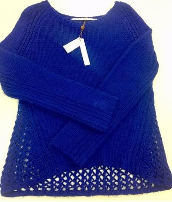 Новий светр TWELFTH STREET by Cynthia Vincent насиченого синього кольору. Стильна модель оверсайз з цікавою дизайнерською в’язкою. Спинка виконана крупною фактурною в’язкою, що додає светру особливого шарму та робить його дуже ефектним. Нижня частина з ажурними елементами виглядає легко та оригінально. Подовжена спинка красиво сідає по фігурі. Ідеально поєднується з джинсами, брюками або спідницею — стильна річ для сучасного гардеробу. Бренд: TWELFTH STREET by Cynthia Vincent Стан: новий з бірками Заміри: • Довжина рукава від комірця — 75 см • Напівобхват під рукавами — 52 см • Низ — 57 см • Довжина спереду — 55 см • Довжина ззаду — 66 см
