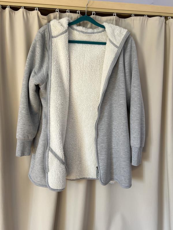 Продаю теплу кофту світло- сірого кольору. Довжина рукава - 59 см. Довжина кофти- 76 см. Пів обхват під груддю- 61 см.