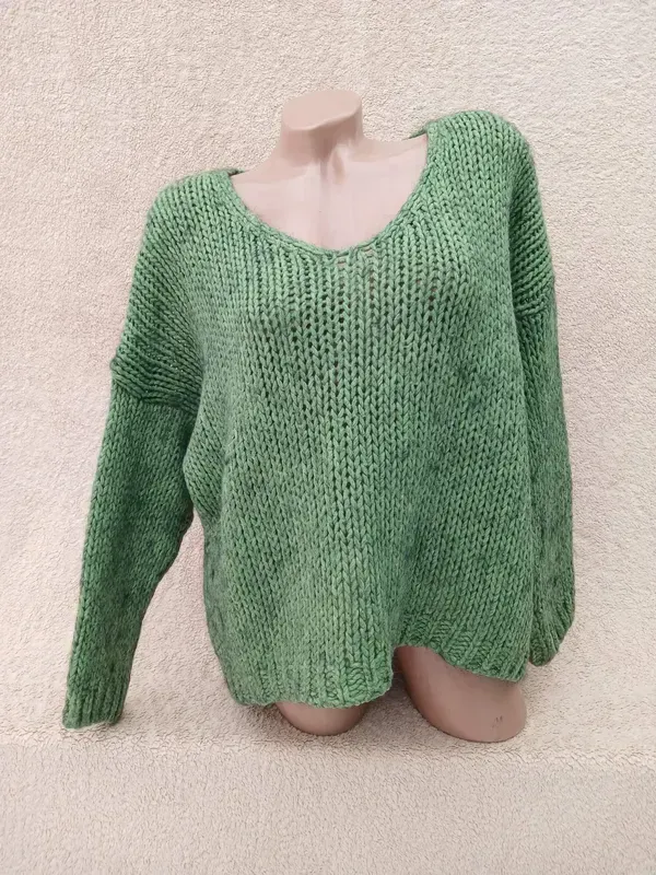 М'який светр, руупне в'язання, становлення ідеалу НО грудей 63-75, ПО низу 63-72, рукав від коміра 66, довжина 60 Замери відзнаки половина