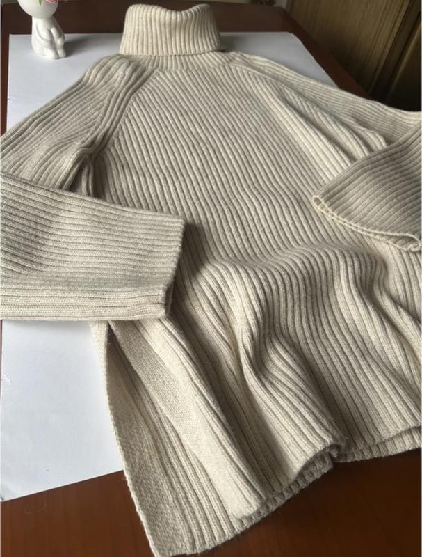 Крутезний подовжений масивний светр з високою горловинкою 🍦 Стан нового. Актуальний і теплючий, має у складі вовну) Світлий натуральний відтінок. Широкі рукави красиво спадають на пальчики. Масивна, але не заважка в’язка, в широкий рубчик, річ ідеально тримає форму) Він не тільки зігріє, а ще й подарує відчуття стилю і в легінсах, і в широких брючках чи джинсах 🥰 При стриманому дизайні виглядає мегатрендово) Це кохання) 🏷 6% вовна, 30% акрил, 64% поліестер. Розмір вказано М, підійде також на L, можна як овер на S. Але обов’язково орієнтуйтеся на заміри, будь ласка: Напівобхват грудей - 58 см, довжина - 77 см, висота горловини - 21 см, рукав від горловинки - 78 см. Чудово тягнеться.