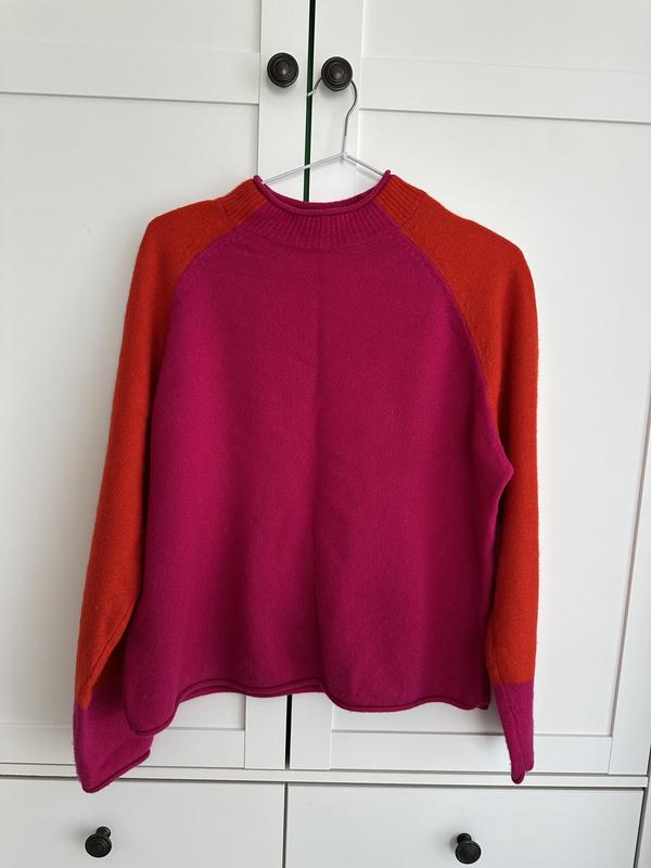 Повністю натуральний склад, 70 вовна, 30 кашемір. Не колеться зовсім, дуже мʼяка і приємна тканина на дотик. Розмір М-Л, орієнтуйтеся на заміри. Комір вільний, не тисне. Стан ідеальний, недоліків немає. Довжина по спині 57 см Ширина під пахвами 52 см Довжина рукава від горла 70 см Висота коміра 4 см