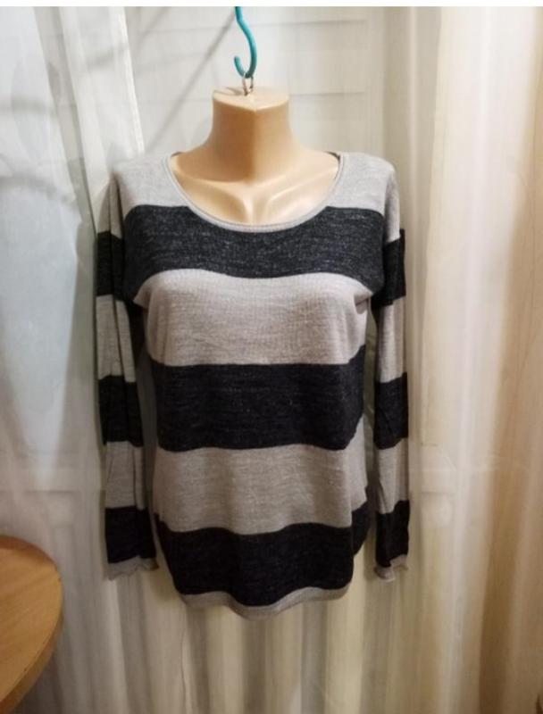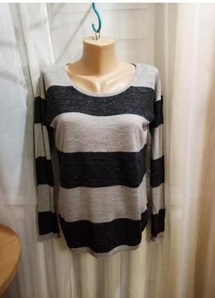 свитер колir сиро-черный, в полоску, размир М-L, замиры: плечи 52(приспущенные), длина 61,рукав 53, грудь, талия 50,с уда кнопочки, в составе присутствует шерсть