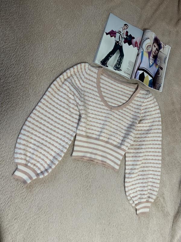 Укорочений светр🎀 Стан відмінний; Розмір S/M; 🏷️200 грн . Пл 36-37 см; Р 63-64 см; ПОГ 39-50 см; Д 44-45 см