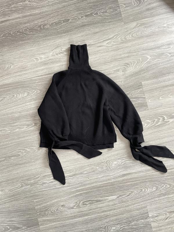 Вкорочений светр з горлом ZARA Написано розмір S, але я б сказала XS, бо дуже вузьке горло. Рукава на завʼязках, спереду довжина 50 см Ззаду 55 см
