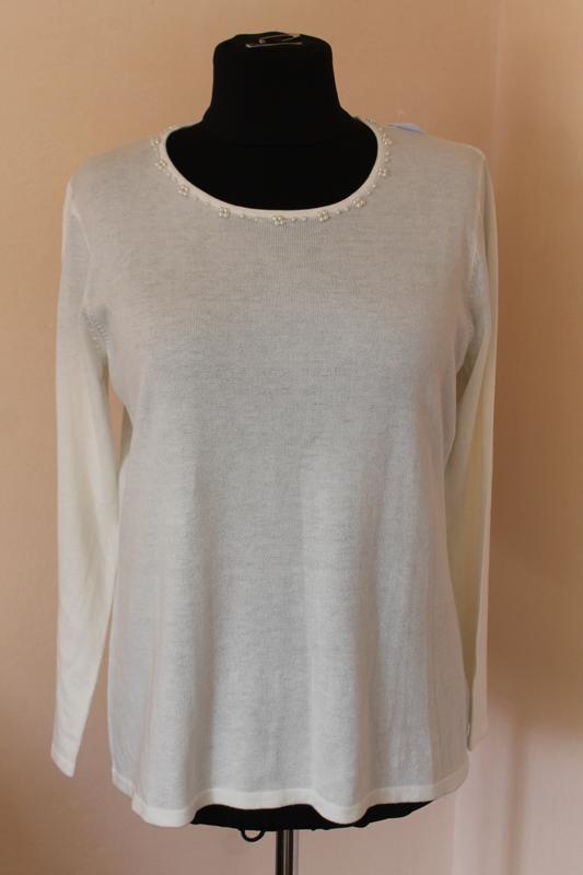 Класна біла кофта з перлиами(бісер), придбана в Європі, розмір Л,одягнуто на манекен 52 розміру.Довжина-69см, плечі-43,5 см, рукав від плеча-62cm, пог-58см.