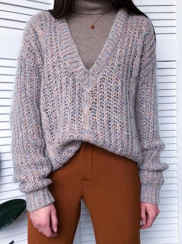 Ідеальний светр з глибоким V - вирізом, можна одягнути на гольф чі на голе тіло. Легка у язка, альо теплющий, так як в складі є мохер. Стан ідеальний.