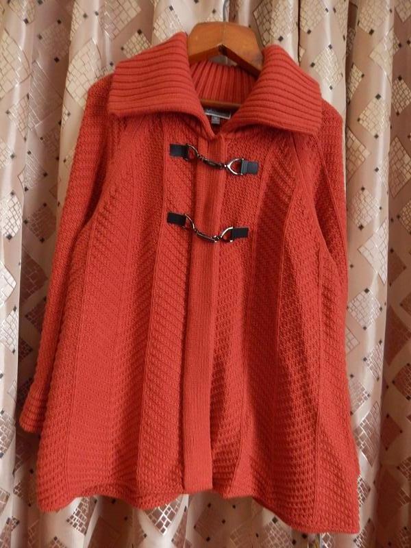 Нова, Довжина переду 54см, зад 63див, ширина воротніка 17см, рукав від плеча 59см (РЕГЛАН), ширина низ рукава 20см, ширина грудей 51см, ширина низу 58см, Застібується на двох кнопкках і замочку. Край - трапеція. Тягнеться