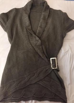 Светр короткий рукав, подовжений , прикрашений пряжкою, дуже теплий, розмір приблизно S , ідеальний стан, заміри по бажанню