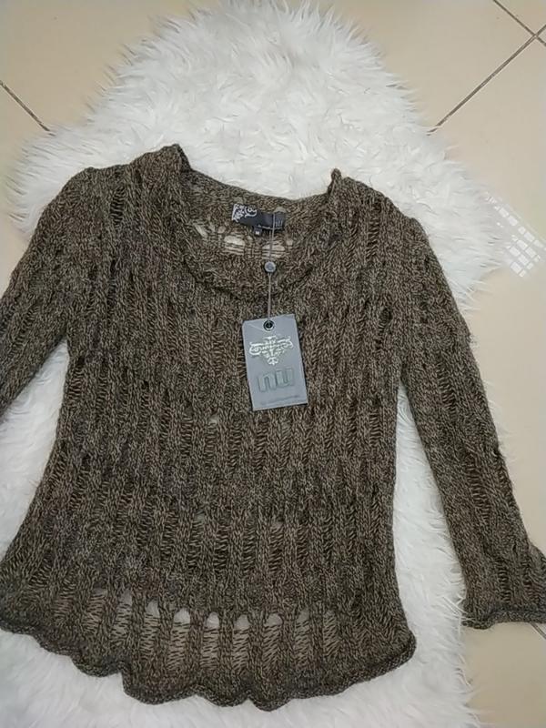 шикарний,стильний светр в'язка у дірку.Попереду довші,ніж ззаду,красиво виглядає під тілесне білизна.ПОГ46 ,рукав53 Довжина спереди59,сзади47