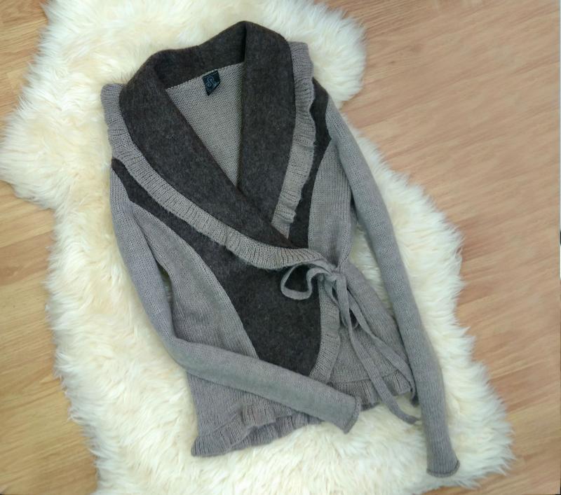 тепла кофта на запах внизу рюшу 50% шерсть, розмір М-Л довжина 57 см рукав-61 см