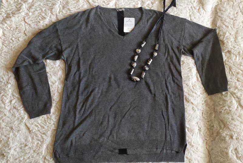Продам базовий жіночий светр. Подовжена спинка. На спині декоративна смуга. Тонкий і приємний на дотик. Гарний v-подібний виріз. Розмір: L(44/46) Склад: 60% віскоза 40% коттон
